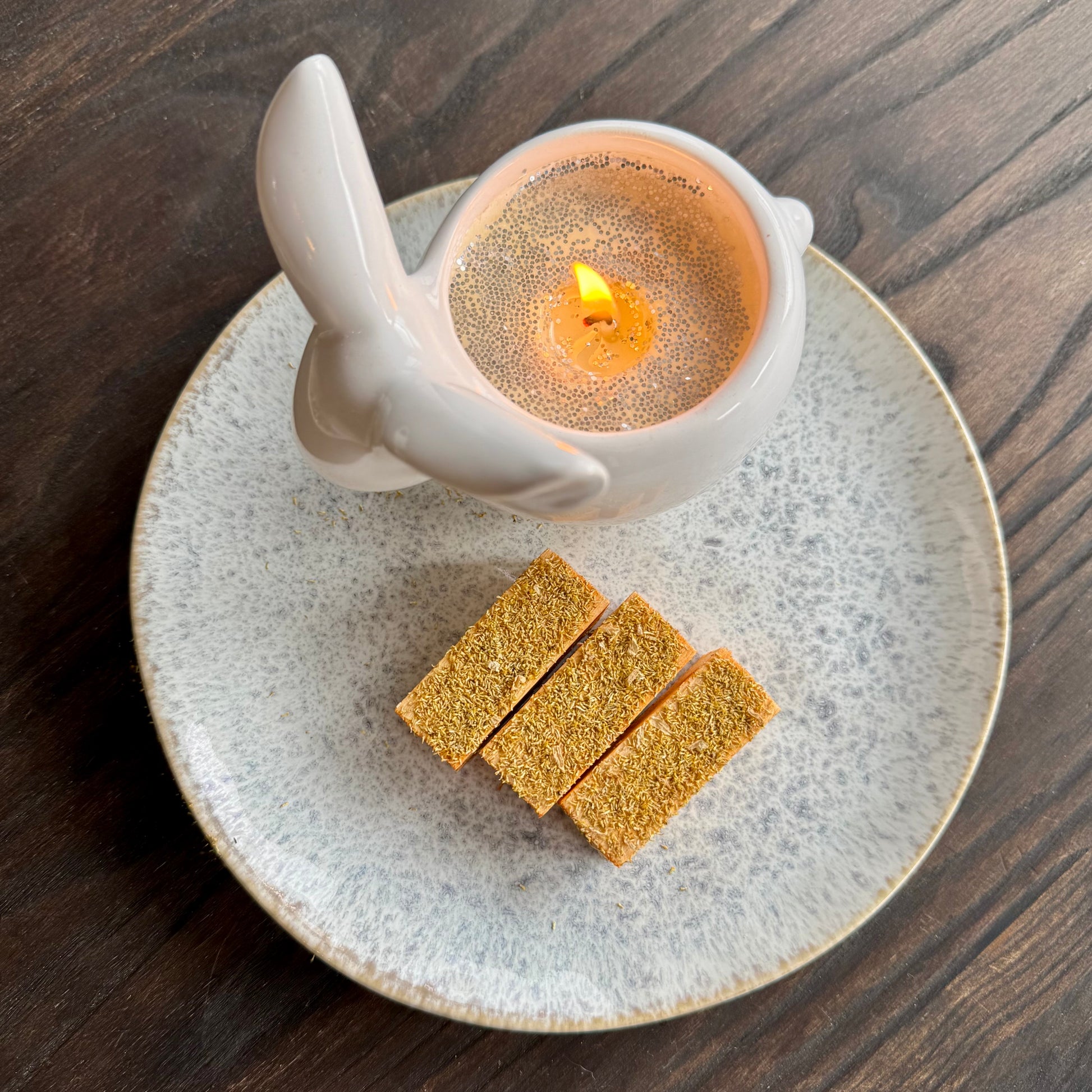 Bring some fall magic to your bunny's day with our Pumpkin Spice Balsa Blocks. Each block is soaked in an organic pumpkin puree, and sprinkled with organic chamomile for a calming enrichment treat.